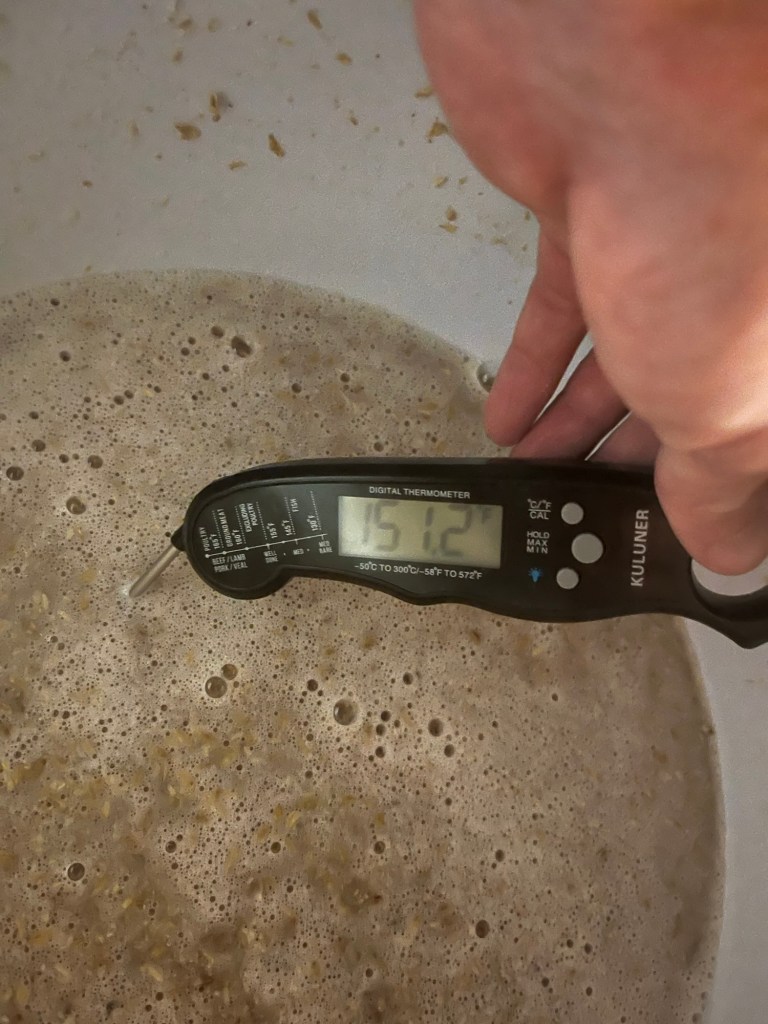 We’re doing a step mash today. Aiming for a 122° mash to help break down some of the oat gumminess. Then going for a 152° rest.