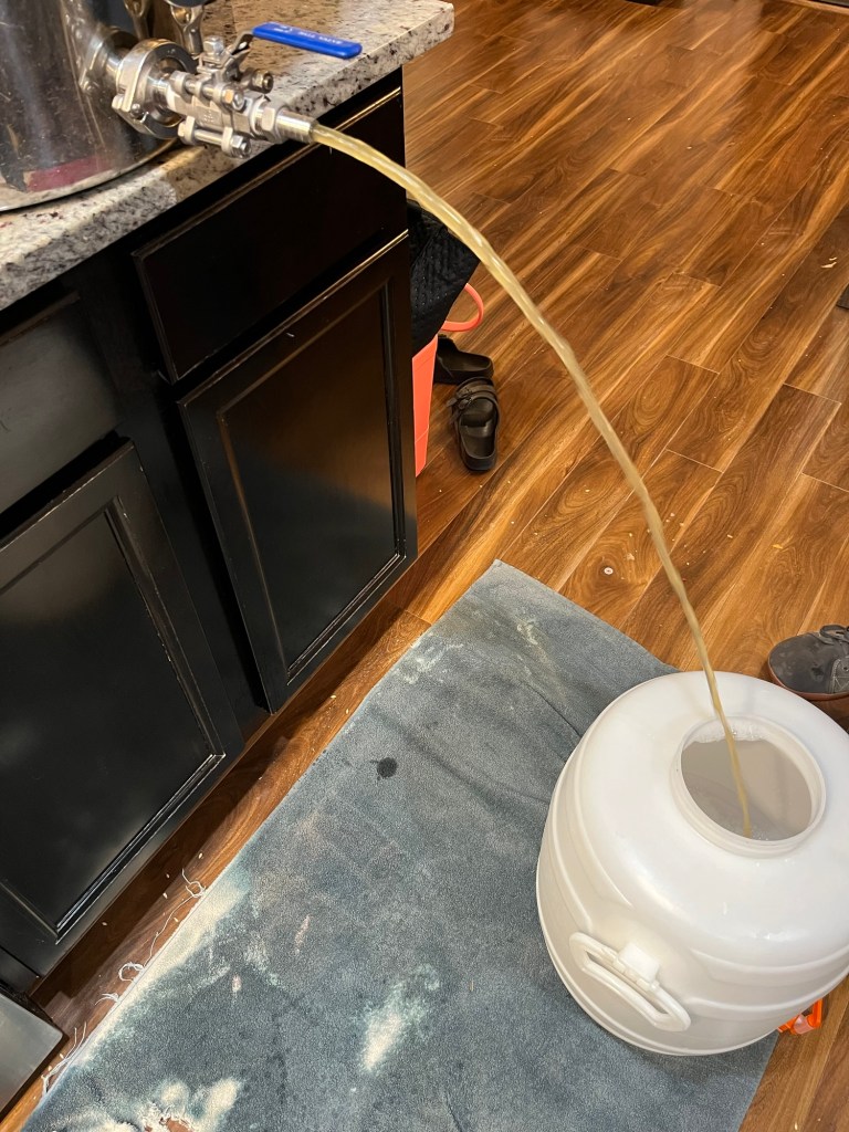 After 15 minutes, we added boiling water to get to 152°. Within the target volume, we weren’t able to 152°, though, so we had to do a decoction to get the temp up. Ended up doing three rounds of decoction to finally hit 153°. I’m using “decoction” to mean that we pulled out about a half gallon of mash with liquid and grains and bringing it to a boil in another vessel then pouring it back in. I know that’s not quite the same thing that’s normally meant be decoction mash, but it makes me feel like we’re doing cool brewing stuff.