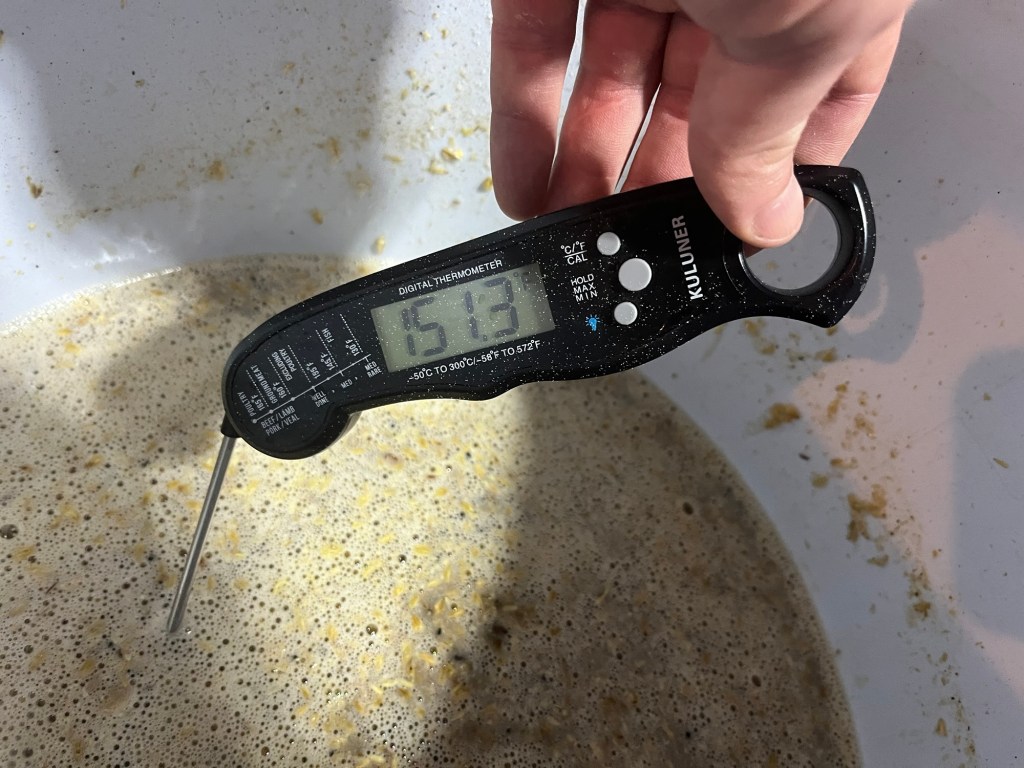 We’re doing a step mash today. Aiming for a 122° mash to help break down some of the oat gumminess. Then going for a 152° rest.