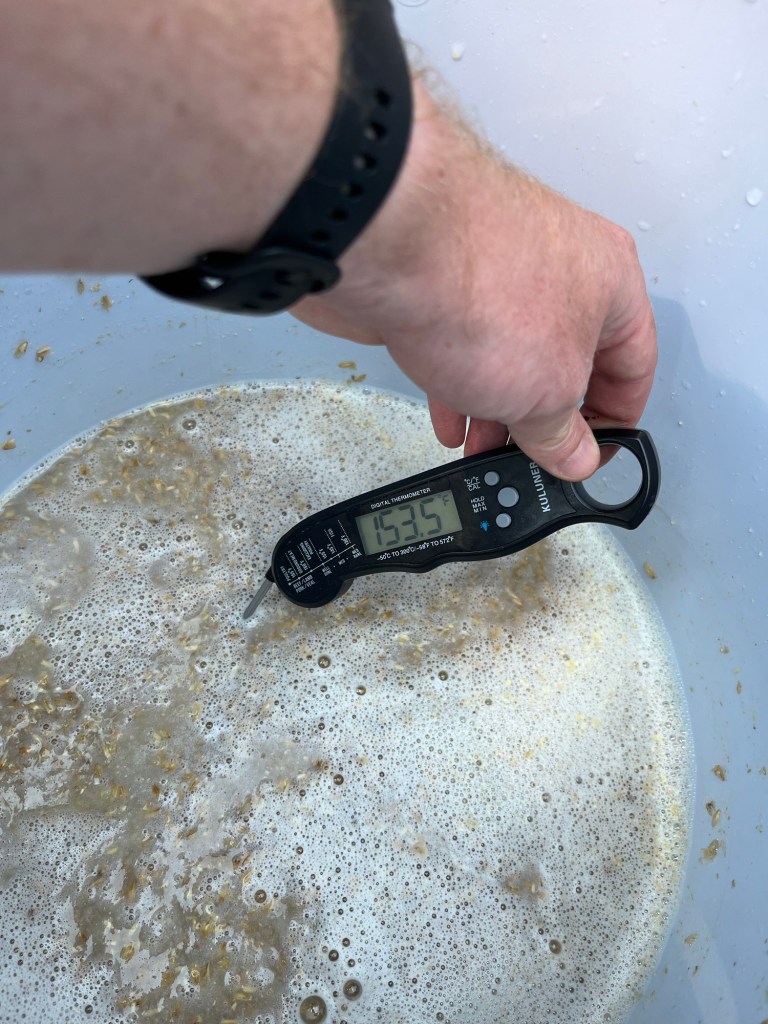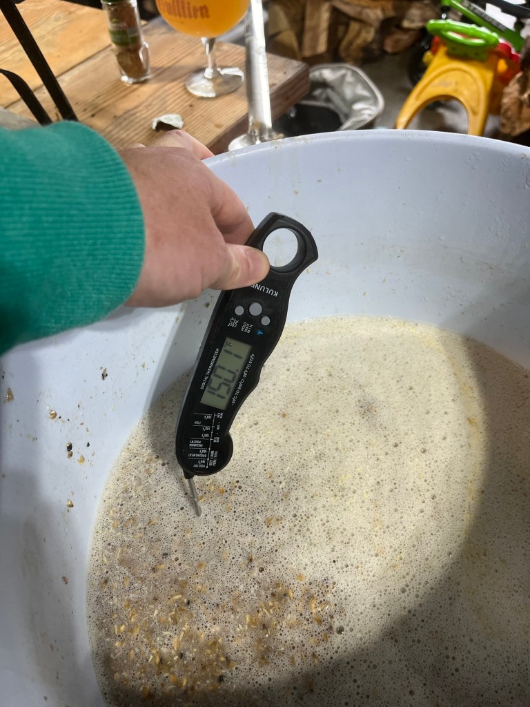 We’re doing a step mash today. Aiming for a 122° mash to help break down some of the oat gumminess. Then going for a 152° rest.